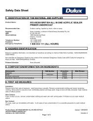 Safety data sheet product name. Sds404 dulux trade undercoat page 1 revision. Use dulux 1 step prep for all general paint surfaces around your home including interior and exterior walls ceilings doors windows trim and especially. Safety data sheets a safety data sheet sds is a document prepared by the manufacturer that details information with respect to the physical and chemical properties of the product.