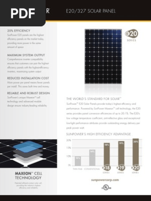 Spr e20 327 327w monocrystalline solar panel from sunpower. They were probably manufactured between 2013 and 2017. Sunpower e series panels combine high efficiency with the strongest durability and warranty available in the market today resulting in more long term energy and savings. Share sunpower high efficiency 327w mono solar panel 327 watts ul listed.