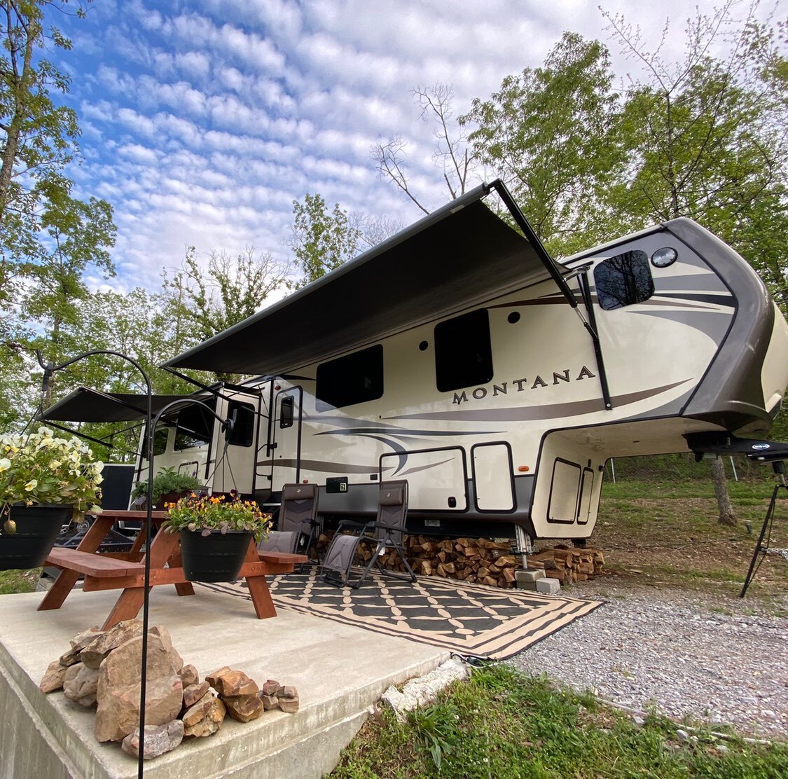 Hikers Rest Under This Nuimage Pro Series 7700 Retractable Awning In Grey Beige Chip Fancy 4777 Sunbrella Fabric Retractable Awning Awning Retractable
