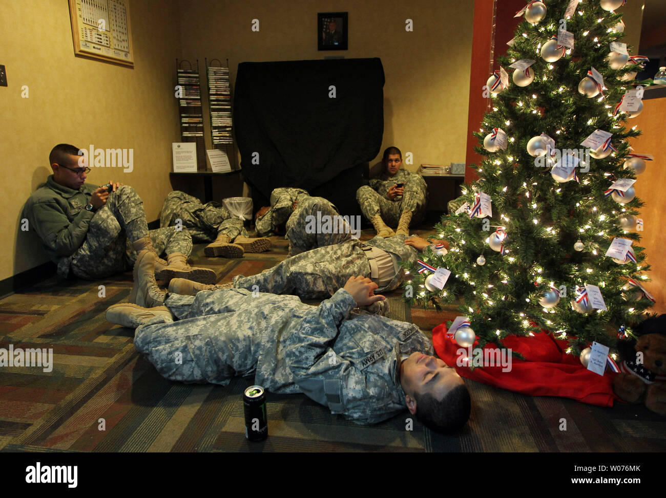 Soldiers From Fort Leonard Wood Sit Wherever Thay Can In The Coucorse As They Wait For Their Flights During Holiday Block Leave At St Louis Lambert International Airport In St Louis On December
